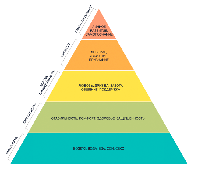 Одна из самых популярных теорий, связанных с мотивацией, — это теория потребностей американского психолога Абрахама Маслоу.