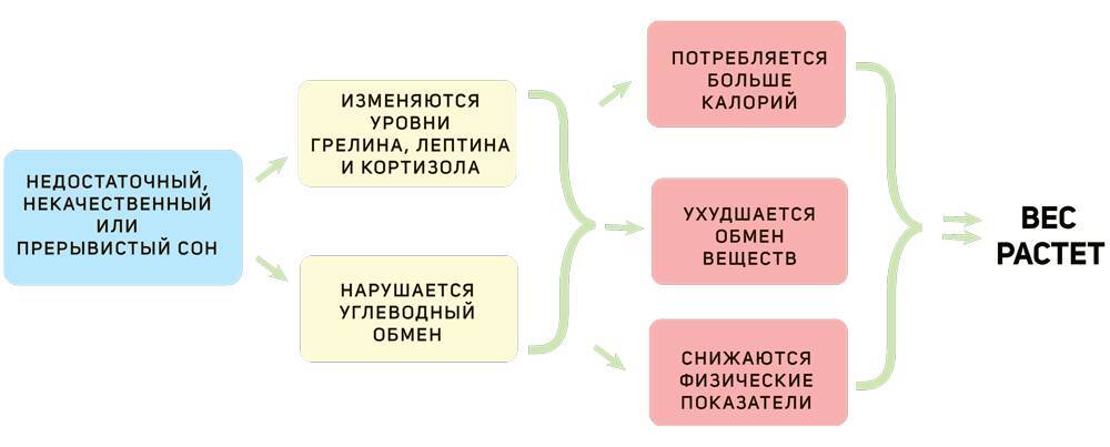 Недостаток сна влияет на гормоны, которые отвечают за ощущение голода и насыщения: грелин и лептин.